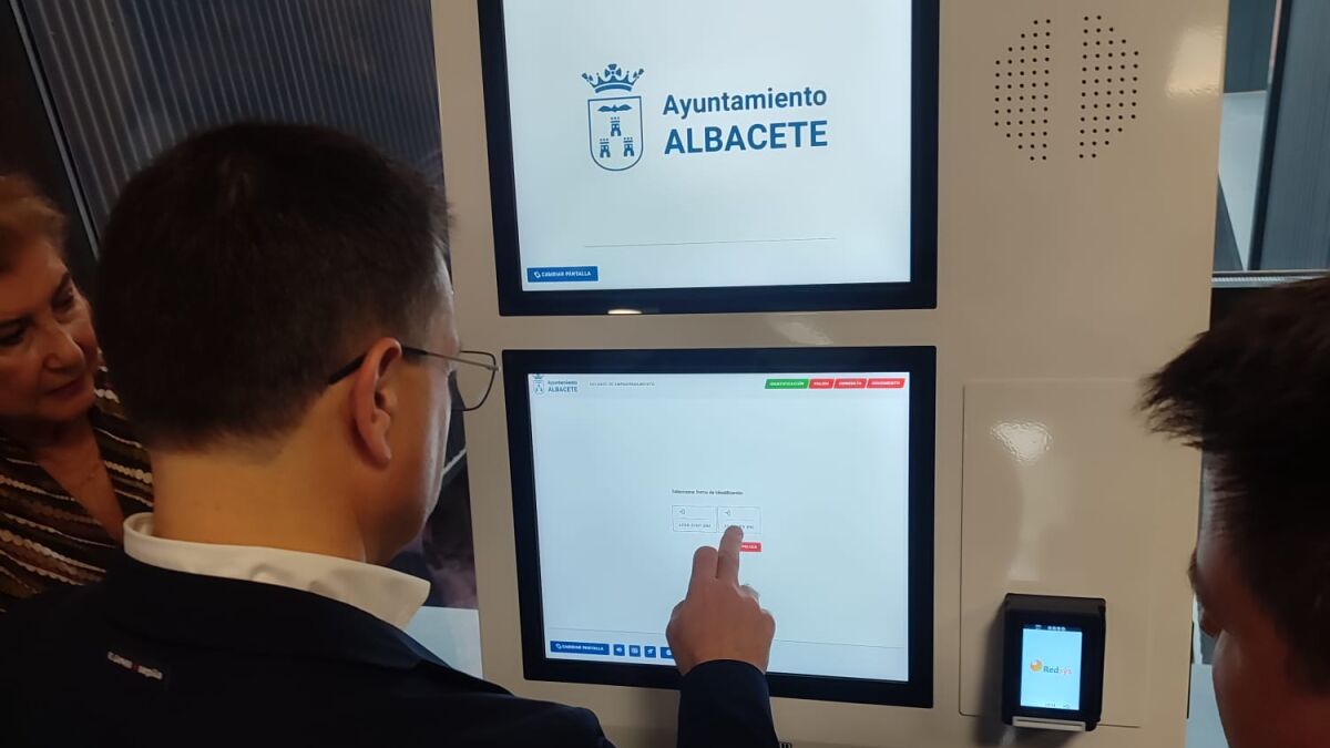 El alcalde Manuel Serrano ha presentado en el Centro Ágora el primer ‘Cajero de atención ciudadana’ que se pone en funcionamiento en Albacete, el denominado Ciberkiosko, un proyecto que ha supuesto una inversión de 16.000 euros y al que el alcalde se ha referido como “el Ayuntamiento en tu barrio”. Serrano y el resto de asistentes han podido comprobar el funcionamiento de un punto de atención interactivo que permite realizar trámites municipales de forma autónoma sin desplazarse a las dependencias que corresponda, y sin necesidad de acudir a un banco o utilizar dispositivos personales. También ha destacado que “ponemos en marcha este nuevo servicio en un centro de referencia como es el Ágora. En los centros socioculturales del Ayuntamiento hay mucha vida, son hervideros de actividad de los vecinos y de nuestro rico tejido asociativo, y pueden servir también. gracias a los modernos medios telemáticos, para acceder a información municipal y tener el Ayuntamiento en un entorno próximo”.