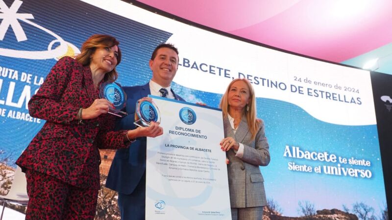 Santiago Cabañero, presidente de la Diputación, su presidente, ha recibido esa importante acreditación de manos de Antonia Varela, directora de la Fundación, en un paso más que simboliza el compromiso de la provincia con el turismo sostenible y la preservación de los cielos nocturnos.
