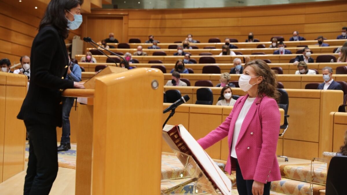Ha sido la presidenta del Senado, Pilar Llop, la que, al inicio de la sesión, ha reclamado la presencia de Aurelia Sánchez para, ante un ejemplar de la Carta Magna, tomarle declaración de acatamiento.
