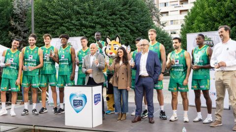Aquadeus, empresa de agua mineral natural e integrada en Grupo Fuertes, promocionará al equipo Bueno Arenas Albacete Basket en las etiquetas de un millón de botellas de 0,33litros en las que incluirá el escudo del club,a su mascota Linceus así como el grito de guerra “Ruido Parque Ruido” con el que les anima su afición. La iniciativa fue presentada en el acto de la puesta de largo de la nueva camiseta oficial del equipo. Aquadeus está comprometida con la práctica deportiva y con los hábitos de vida saludables y, además de colaborar con el equipo deportivo como patrocinador en diferentes acciones, ha decidido promocionarlos a través de las etiquetas en sus envases.