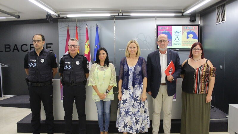 La concejala responsable de Mujer e Igualdad, Gala de la Calzada, ha presentado la campaña ‘Por una Feria libre de agresiones sexuales’, acompañada del presidente local de Cruz Roja Albacete, Francisco Pérez del Campo, la gerente de la Asociación Provincial de Hostelería y Turismo, Begoña Garijo, y el intendente jefe de la Policía Local, Pascual Martínez. La concejala destacó que “nuestras fiestas locales representan una oportunidad de interacción social, con una gran acumulación de personas en determinados lugares que a veces dan lugar a conductas y comportamientos indeseables, instigados por el ‘todo vale’ en nombre del alcohol y la diversión, y que debemos evitar entre todos. Se trata por tanto de un proyecto de prevención, de detección y de atención”.