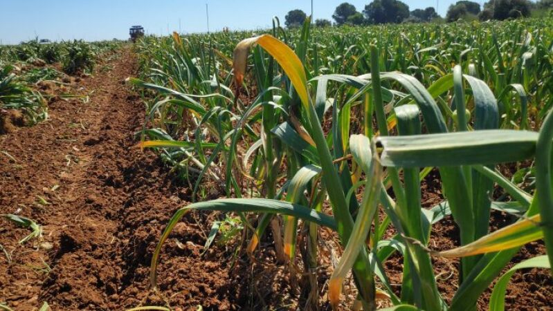 El subdelegado del Gobierno de España en la provincia de Albacete, Miguel Juan Espinosa; y el alcalde de Balazote, José Antonio Simón, han mantenido una reunión de trabajo en la que han analizado la evolución de la campaña de recolección del ajo en la localidad.