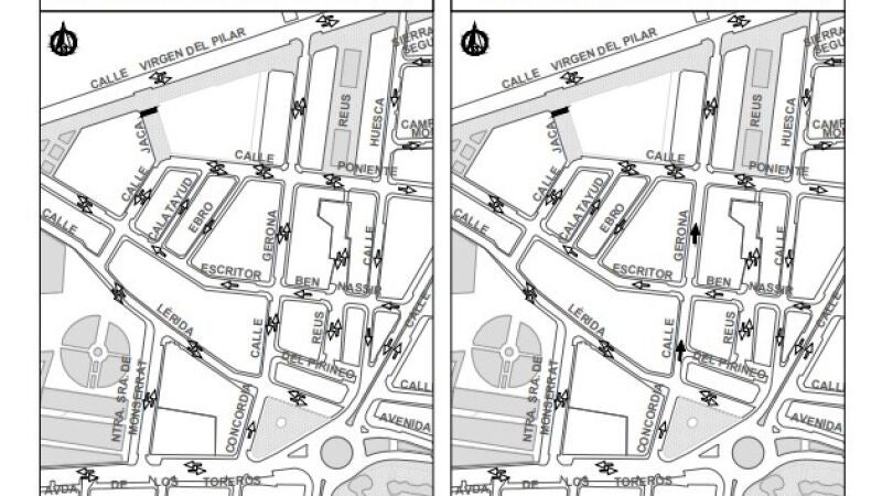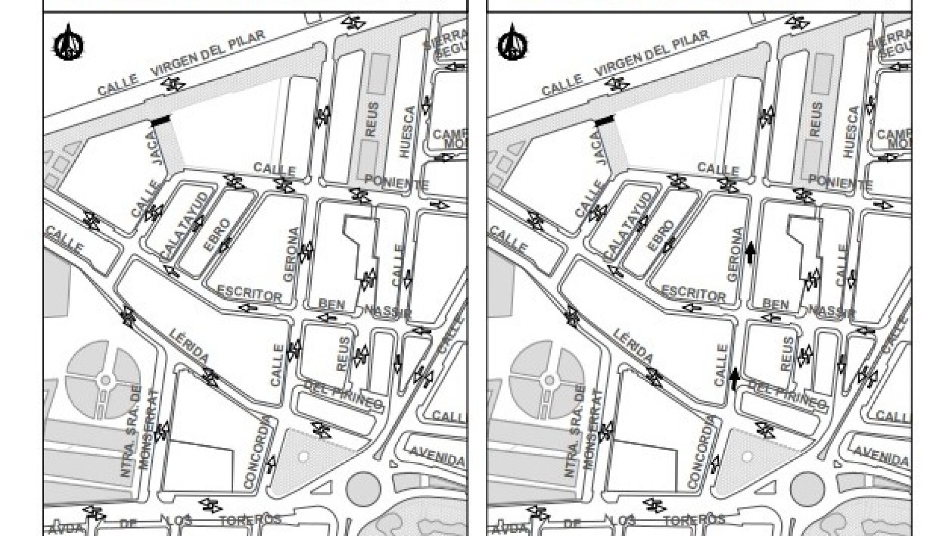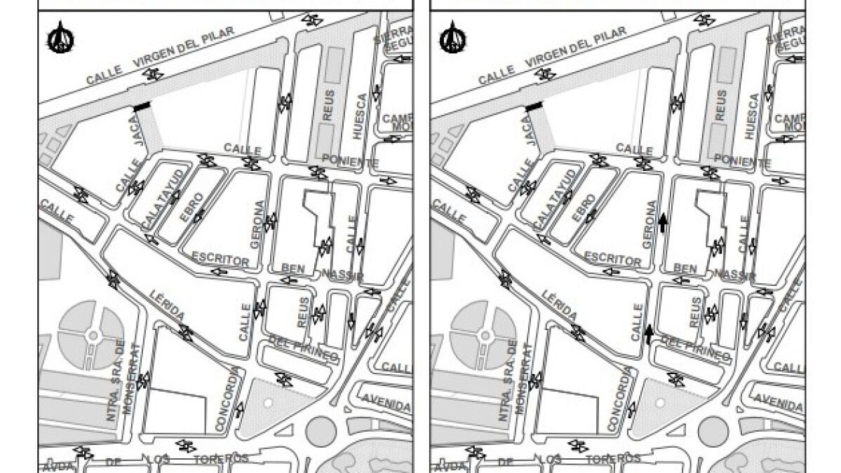 Así, se eliminará el doble sentido de circulación que existe actualmente en la calle Gerona, entre las calles Lérida y Poniente. Por tanto, la calle Gerona quedará con circulación en un único sentido en este tramo, permitiéndose el paso de vehículos desde calle Lérida hacia calle Poniente. El último tramo, entre calle Poniente y Virgen del Pilar, permanecerá con los dos sentidos autorizados actuales.