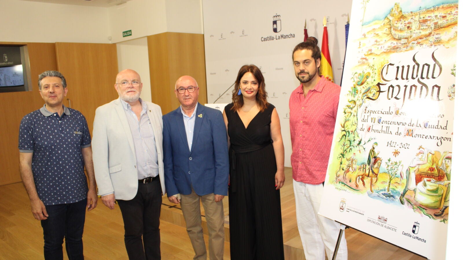 El espectáculo “Ciudad Forjada” se celebrará a las 23.00 horas, del próximo 18 de junio, en la Plaza Monumental de La Mancha. En su presentación, han coincidido el delegado de la Junta, Pedro Antonio Ruiz Santos; el alcalde del Ayuntamiento de Chinchilla, Francisco Morote; la concejala de Cultura, Silvia Abellán; el director de esta recreación histórica, José Tomás Cháfer y el actor albaceteño, Antonio Campos.