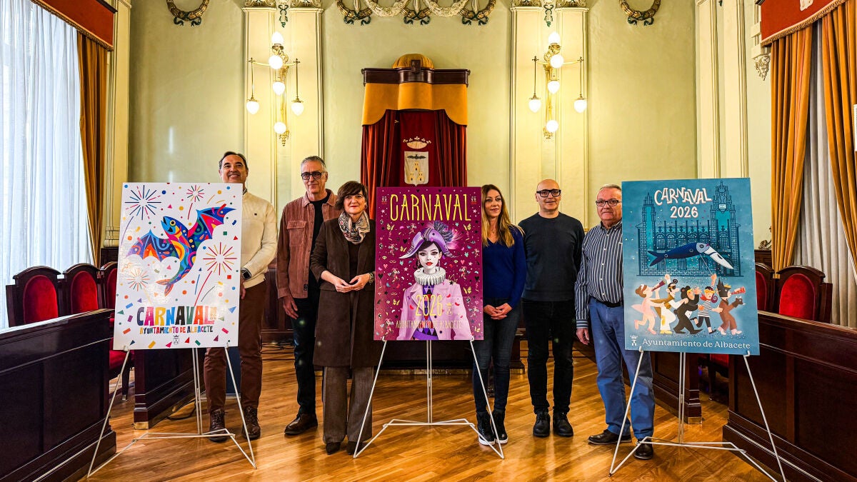 La concejala de Cultura y Festejos, Elena Serrallé, anunció los tres carteles finalistas escogidos por un jurado popular que aspiran a convertirse en la imagen oficial del Carnaval de Albacete 2026 y cuya decisión final dependerá, por segundo año consecutivo, de un proceso de votación popular basado en la participación ciudadana. La concejala dio las gracias a todos los artistas que han participado en el concurso del cartel del Carnaval de Albacete de este año por su importante contribución al engrandecimiento de una celebración que edición tras edición va cogiendo más fuerza en nuestra ciudad y en la que la diversión, el colorido, la expresión cultural y la creatividad son las notas dominantes.