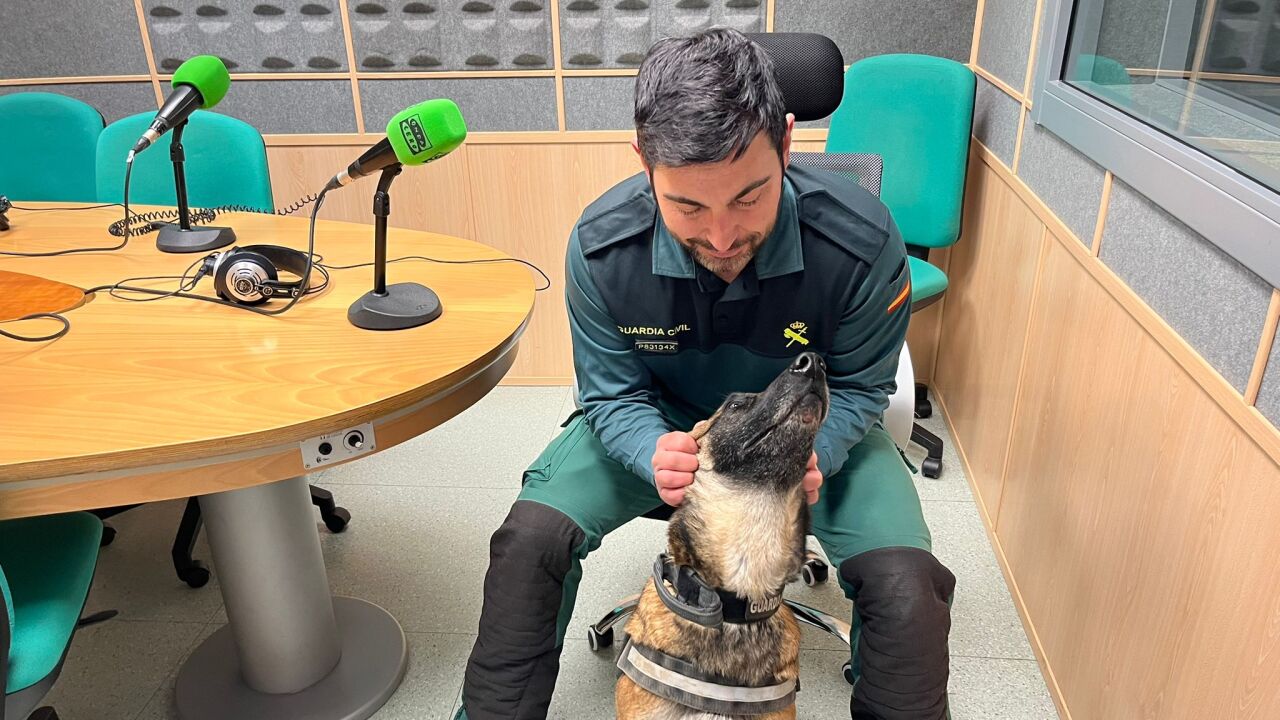 Juan Ballesteros, agente de la Guardia Civil y guía canino, junto a Sira, agente canino encargada del rescate de personas, han pasado por Más de uno Albacete.