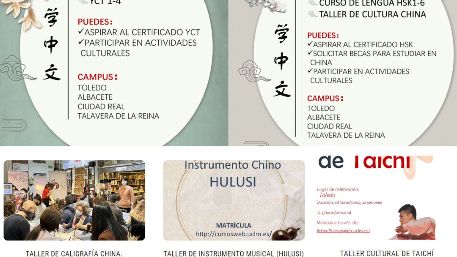 El Instituto Confucio de la Universidad de Castilla-La Mancha (UCLM) ha abierto hasta el 30 de septiembre la inscripción en sus cursos y talleres, un programa concebido con el propósito de divulgar la lengua y la cultura del gigante asiático que cada año gana más adeptos entre miembros de la comunidad universitaria y entre la sociedad en general.
