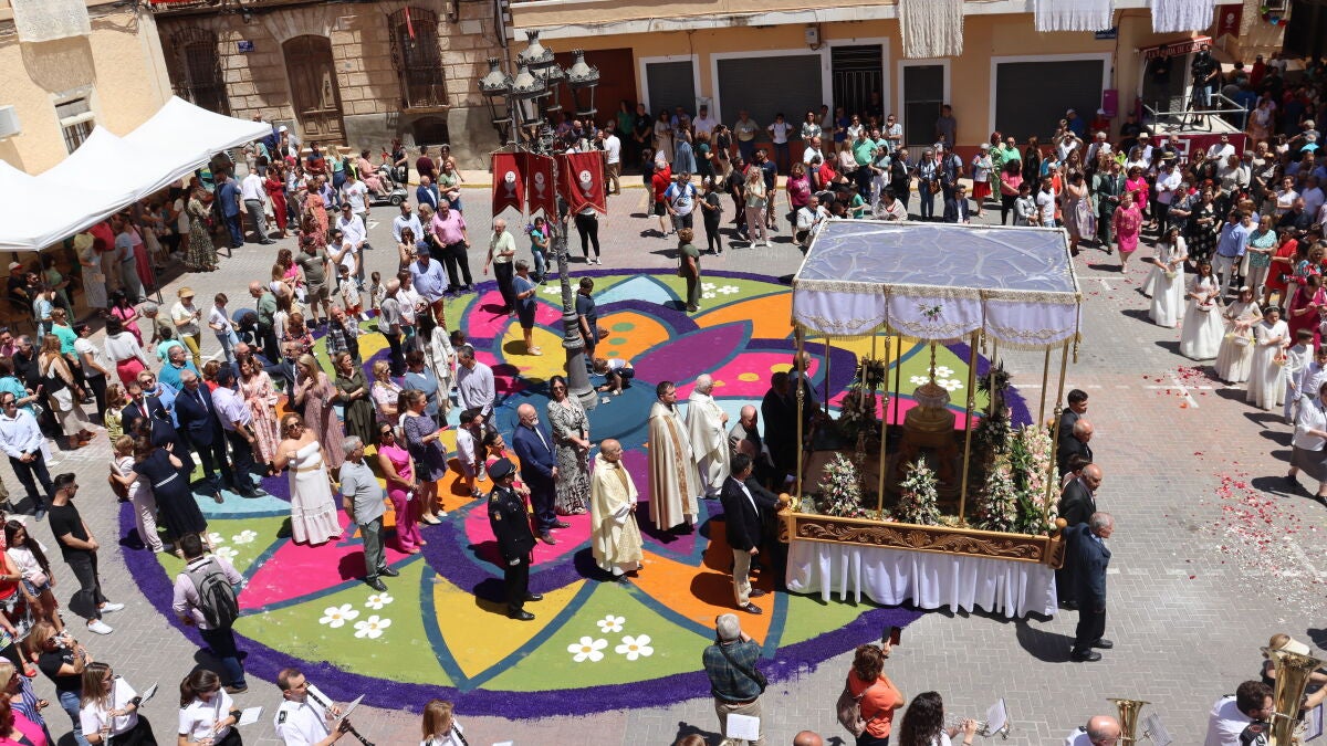 La Procesión del Corpus, con música a cargo de la Agrupación Musical Santa Cecilia, supone el punto álgido y final para esta celebración que arroja cifras elocuentes: 5.000 kg de serrín, 500 tableros, 30.000 € de inversión municipal, 5.000 € en premios a todas las peñas participantes, 17.000 m² de alfombras, 600 alfombristas y 200 niños y niñas participantes