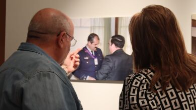 La exposición recoge también instantáneas sobre la primera mujer presidenta de la Real Ilustre Esclavitud, o la peregrinación que, desde hace 26 años, realizan sus fieles desde Pozo Cañada, el día antes del besapiés al Medinaceli.