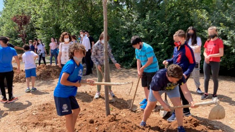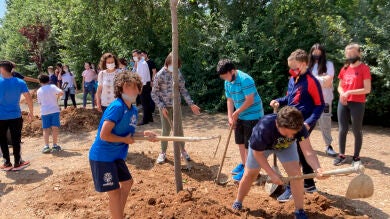 80 alumnos de 6º de primaria del CEIP Eduardo Sanchiz de Tarazona de la Mancha capitaneados por su director han participado en la plantación de 12 árboles en las pistas de atletismo de ésta localidad manchega, dirigidos y asesorados por personal del Ayuntamiento. Otros 3 árboles se quedaron en los almacenes para su posterior ubicación en distintos enclaves del pueblo.