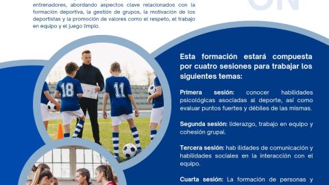 Por ello, este nuevo ciclo formativo está diseñado para dotar a los entrenadores y monitores de recursos y herramientas que les permitan desempeñar su labor de manera más eficaz, independientemente de su formación técnica previa o de la disciplina deportiva que practiquen. La iniciativa pone el foco en aspectos clave relacionados con la gestión de grupos, la motivación y la formación integral de los deportistas.