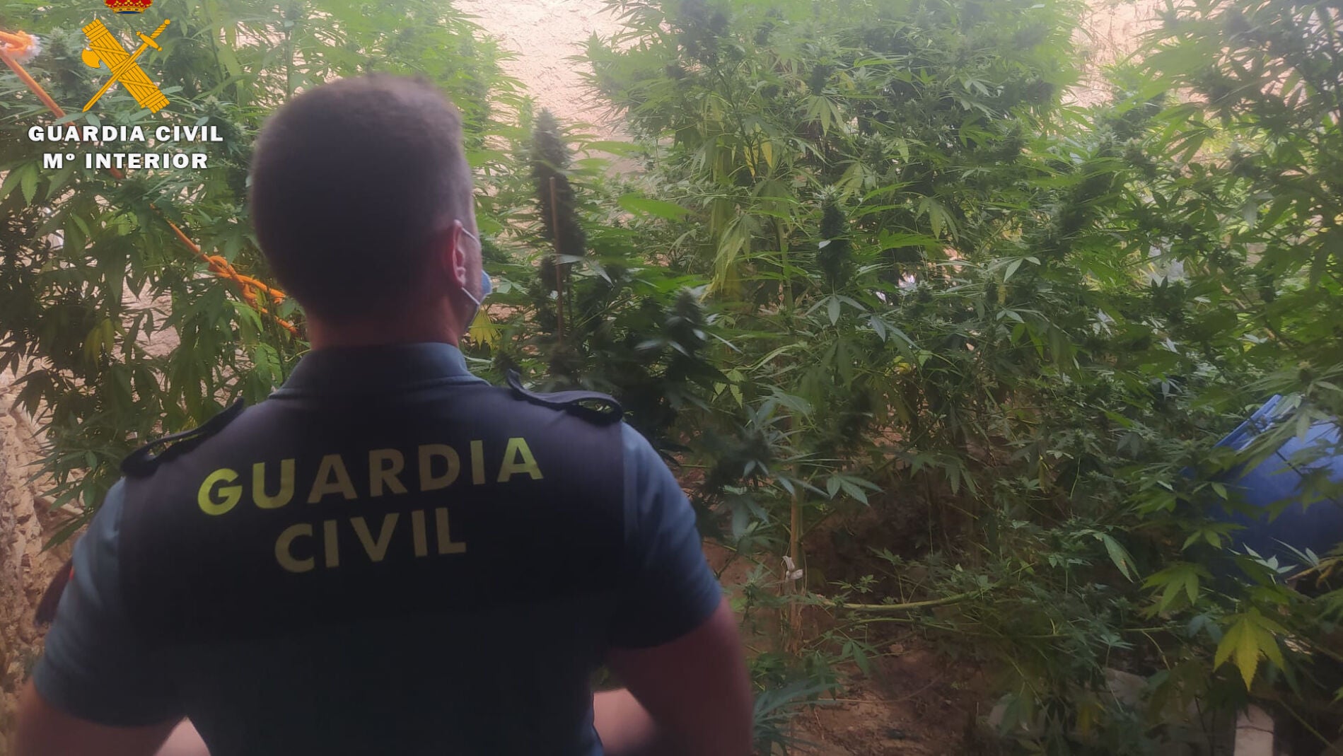 Los hechos tuvieron lugar cuando los agentes de una patrulla de la Guardia Civil de Caudete, a su paso por un barrio de su localidad, percibieron un fuerte olor a cannabis sativa que procedía de un corral anexo a una vivienda, observando como del interior del mismo sobresalían varias plantas de marihuana de gran tamaño.
