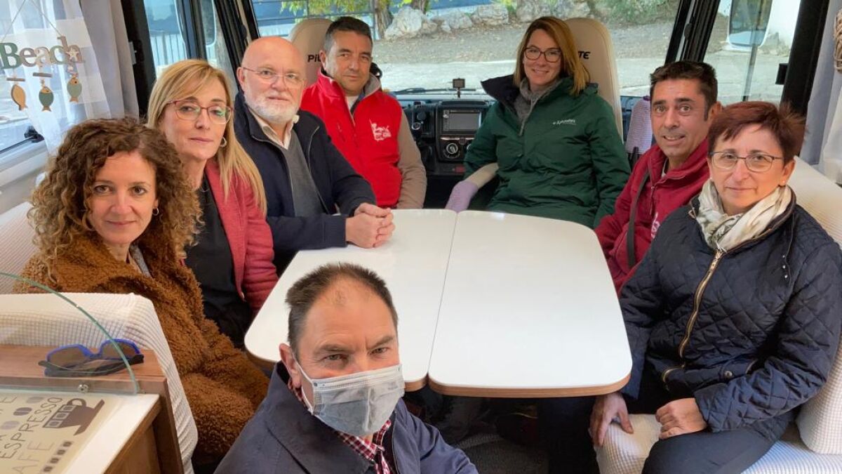 El delegado de la Junta en Albacete, Pedro Antonio Ruiz Santos; la alcaldesa de Molinicos, Lola Serrano junto a representantes de su Equipo de Gobierno municipal; el presidente de ACAMA, Francisco Javier Sánchez y la técnica de Turismo, Ascensión Tobajas han visitado este nuevo área de servicio para autocaravanas, y han conocido las posibilidades de este espacio.