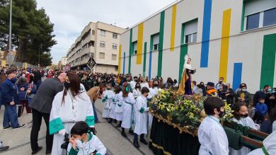 Niños de entre 4 y 12 años que han podido cumplir su ilusión y recorren las calles de Albacete en la procesión "Dejad que los niños se acerquen a mí" que ha hecho su salida a las 17: 30 desde la Parroquia de Ntra Sra de Las Angustias. La evolución positiva de la pandemia y las condiciones meteorológicas favorables han permitido que tomen la ciudad en una de las citas más emotivas de la Semana Santa albaceteña en la que los niños portan réplicas infantiles de varios pasos como el de la Cofradía de la Oración en el Huerto o la Hermandad de Sta. María Magdalena