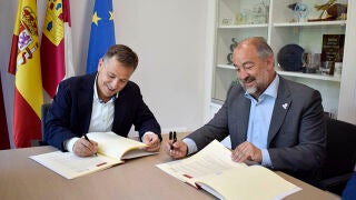 El rector de la Universidad de Castilla-La Mancha (UCLM), Julián Garde, y el alcalde de Albacete, Manuel Serrano, han firmado recientemente el convenio de colaboración que ha dado lugar a la creación de la ‘Cátedra Ciudad de Albacete’ para el fomento de la investigación e innovación