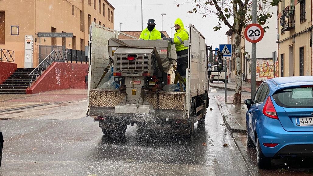 Desde las 06:00h de la madrugada, el servicio municipal de limpieza se encarga del reparto de sal en las principales calles y avenidas de la ciudad, así como en los accesos a edificios públicos y establecimientos comerciales.