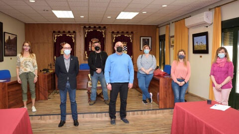 Las representantes de las asociaciones de Madres y Padres de Alumnos (AMPA) de los CEIP Azorín, Sara Rodrigañez; de Ntra. Sra. de Peñarroya, Laura Requena, y de Divino Maestro, Rocio Ruiz; así como del AMPA de la EIM “Alba”, Inmaculada Pardo, y del AMPA Gran Prior del IES Vicente Cano, Pedro Antonio Almarcha, ratificaron, junto al alcalde, Pedro Ángel Jiménez, que estuvo acompañado del concejal de Educación, José Antonio Navarro, el convenio que anualmente vienen suscribiendo entre las asociaciones y la administración local.