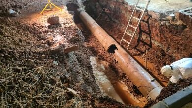 Se procedió a picar parte de la acera y la calzada de hormigón con dos máquinas retroexcavadoras para poder acceder a la totalidad del tramo de tubo a sustituir, sin interferencias significativas con el tendido eléctrico, comunicaciones o agua.