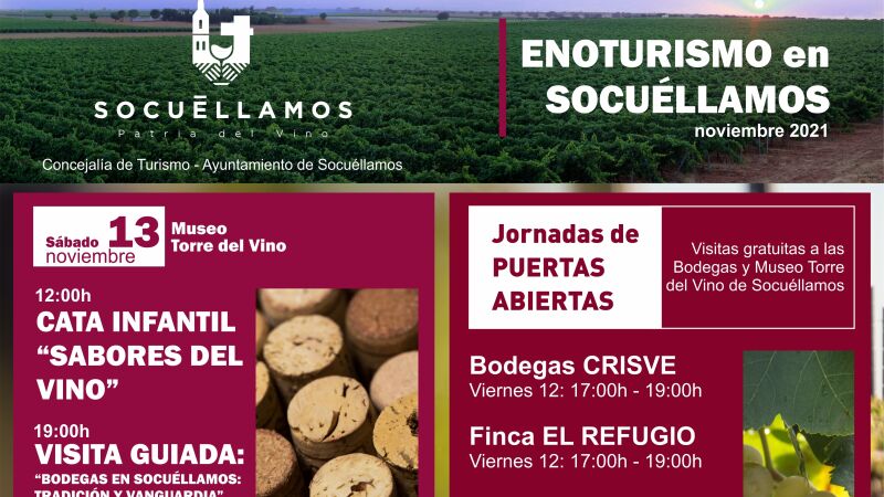 La celebración de esta efeméride comenzará este fin de semana con las Jornadas de Puertas Abiertas en las Bodegas Crisve, Finca El Refugio, Bodegas Tinedo, Bodegas EHD y Bodegas Delgado Collado. Asimismo, el Museo Torre del Vino de Socuéllamos será durante el mes de noviembre el epicentro de las diversas iniciativas de entretenimiento enoturístico para celebrar esta efeméride. Los días 12, 13 y 14 de noviembre ofrecerá unas Jornadas de Puertas Abiertas en las que las visitas al museo serán gratuitas.