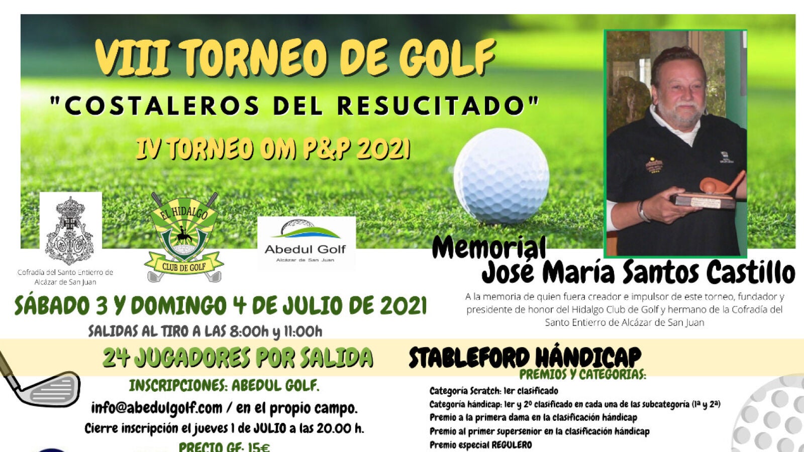 El sábado 3 y domingo 4 de julio tendrá lugar la que ya es la octava edición del torneo benéfico de golf “costaleros del Resucitado, memorial José María Santos Castillo”, creador e impulsor de este torneo, presidente de honor del Hidalgo Club de Golf y hermano de la Cofradía del Santo Entierro.