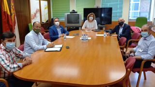 El presidente de la Confederación Hidrográfica del Guadiana (CHG), Samuel Moraleda; el director general de Desarrollo Rural de la Consejería de Agricultura, Agua y Desarrollo Rural de Castilla-La Mancha, José Juan Fernández, junto a la delegada de Agricultura de la Junta de Comunidades en Ciudad Real, Amparo Bremard, y los representantes de la Asociación de Afectados por la No Legalización de Pozos de Explotaciones Prioritarias y Agricultores a Título Principal (ATP) Miguel Fernández, Francisco Zarco y Abel Alcolea se han reunido en la delegación de Agricultura en Ciudad Real para abordar la problemática de los pozos de regadío de las explotaciones prioritarias.