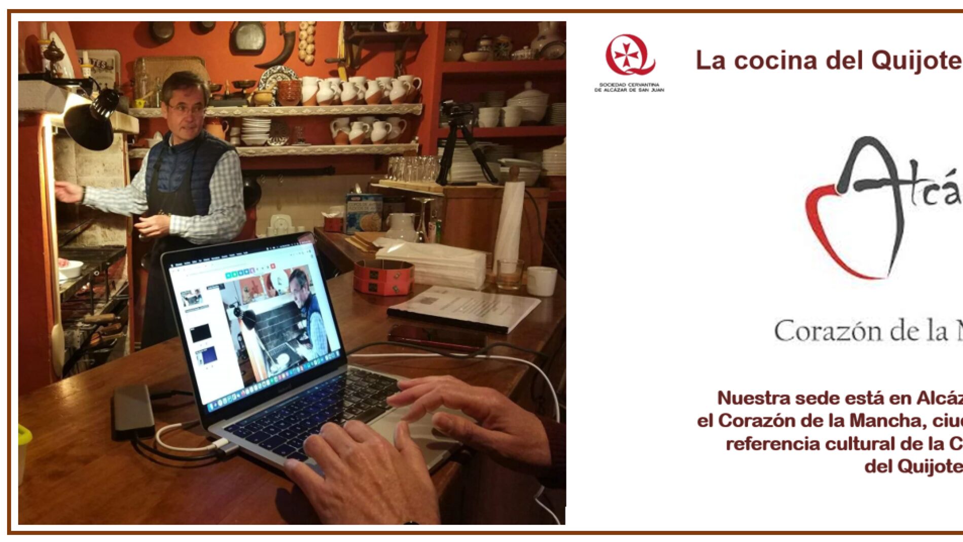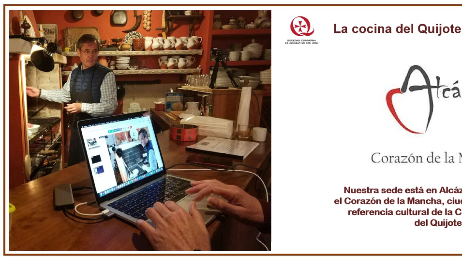 El sábado 20 de marzo ha tenido lugar la actividad denominada «Don Quijote en Volterra» consistente en una conexión mediante videoconferencia en la que socios de la Cervantina de Alcázar de San Juan han explicado a los estudiantes italianos la geografía manchega del Quijote y les han enseñado la elaboración de diferentes platos de la cocina del siglo XVII.