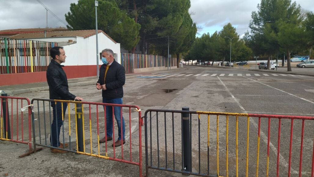 Esta mañana el alcalde Sergio García-Navas y el concejal de Deportes Francisco Gallego de la Sacristana han visitado las obras que se están llevando a cabo para la peatonalización definitiva de los viales aledaños al colegio Carrasco Alcalde y a las zonas deportivas.