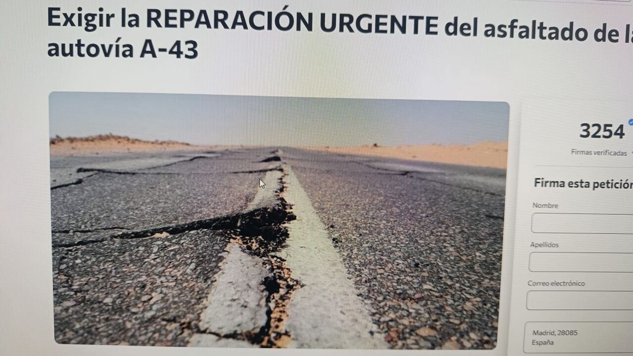 El mal estado del asfaltado en la autovía A‑43 que une Daimiel con Ciudad Real ha llevado a conductores y vecinos, liderados por Jesús Alegre, a iniciar una campaña de recogida de firmas en Change.org. La iniciativa busca visibilizar los problemas de seguridad y los daños que sufren los vehículos, presionando a las autoridades para que acometan cuanto antes las obras de mejora en este tramo.
