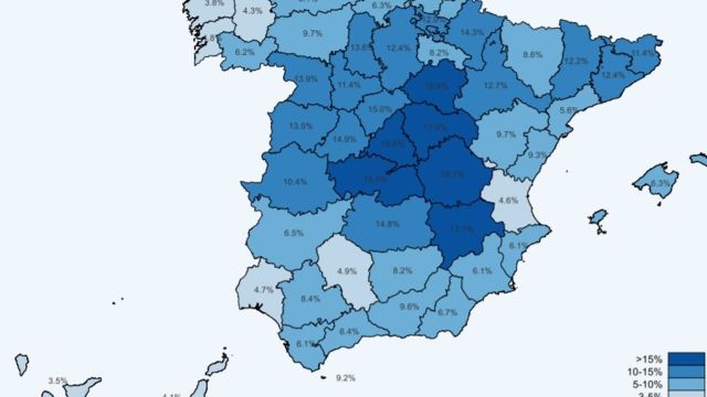 A nivel provincial, cuatro de las cinco provincias castellanomanchegas se colocan entre los seis primeros puestos. Así, Cuenca lidera la tabla con un 18,7%; seguida de Soria, con un 18,6%; misma tasa que la provincia de Madrid.