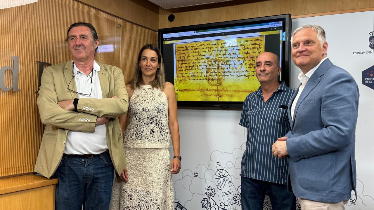 El alcalde de Ciudad Real, Francisco Cañizares; el concejal de Cultura, Pedro Lozano; el responsable del Archivo Municipal, Valeriano Villajos, y la responsable de administración electrónica en el Ayuntamiento, Teresa Carmona, han sido los encargados de presentar esta novedad que sitúa a la capital "a la vanguardia en transparencia y acceso a la historia local".