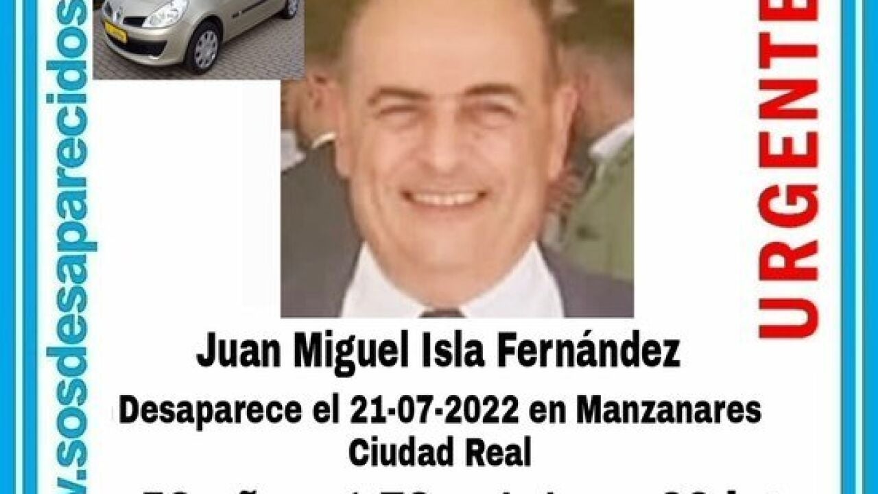 Según informó SOS Desparecidos en Twitter, Juan Miguel Isla tiene 58 años de edad, mide 1,76, tiene calvicie parcial y ojos castaños. Otro dato es que su vehículo, que también desapareció, es un Renault Clio de color gris plata.