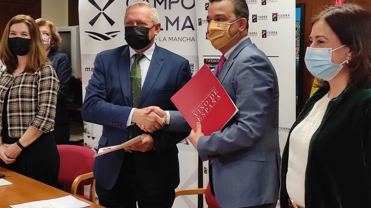 Declaraciones del consejero tras firmar, como presidente de la Fundación “Tierra de Viñedos”, el tercer convenio de colaboración con la Interprofesional del Vino de España, cuyo presupuesto también destinará una parte importante a FENAVIN.