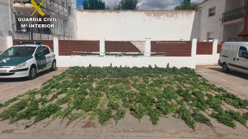 Se han aprehendido un total de 350 plantas de diversos tamaños entre 30 y 180 centímetros de altura, provistas de cogollos y hojas aptas para su secado y posterior consumo, con un peso bruto total de 118,7 kilos.