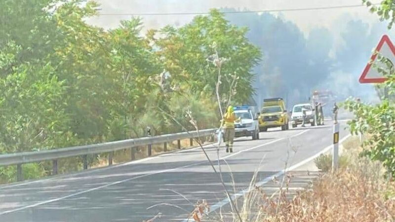 Rincón ha dicho que, como causa del fuego, la hipótesis que se baraja es un fallo mecánico de un vehículo que circulaba por la N-430 lo que provocó que saltará chispas y prendiera la zona agrícola cercada a una finca.