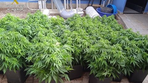 En los registros se intervinieron 128 plantas de marihuana en diferentes fases de crecimiento, así como hachís y 3550 gramos de cogollos de marihuana ya seca, etiquetada y pesada para su venta, según ha informado la Guardia Civil en una nota de prensa.