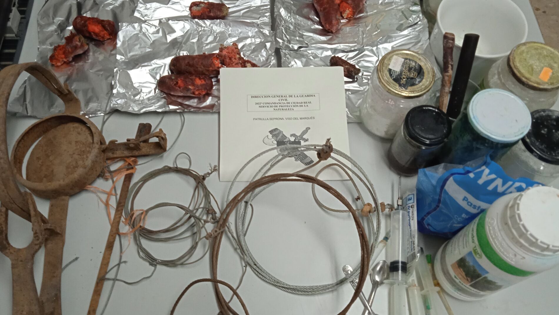 Fueron localizados un total de 13 cebos supuestamente envenados, colocados estratégicamente junto a vivares de conejos y charcas de agua, consistentes en embutidos de chorizo rellenos de alguna sustancia nociva con un fuerte olor a producto químico y presentando mezclas de una pasta de color rosado y azulado e incluso algún cebo con alfileres clavados, para hacer aún más letal su ingesta por los animales predadores. Casi todos los cebos eran frescos, pero también se localizaron otros cebos más antiguos.