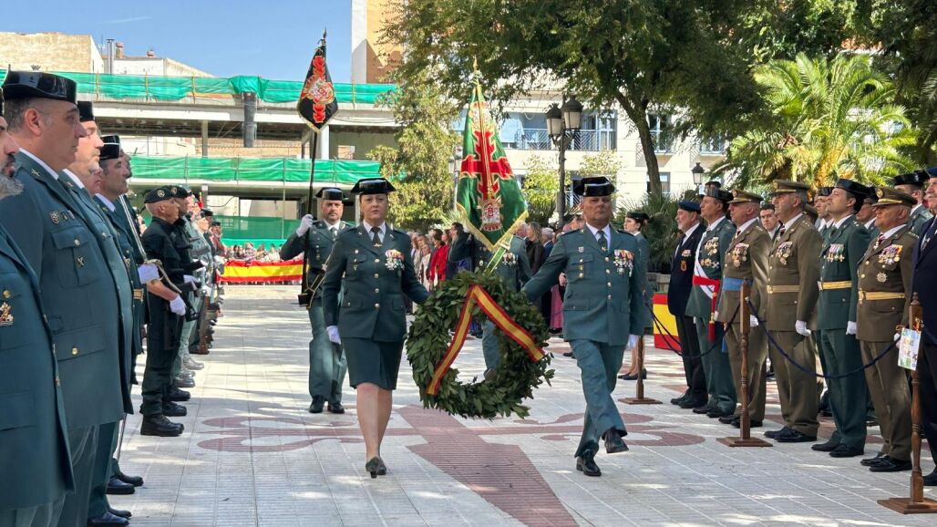 El subdelegado del Gobierno en Ciudad Real, David Broceño Caminero, junto con el coronel jefe de la Comandancia de la Guardia Civil de Ciudad Real, Juan Antonio Valle, han presidido este año los actos de celebración del día de la patrona de la Guardia Civil, la Virgen del Pilar, en los Jardines del Prado como es tradicional.
