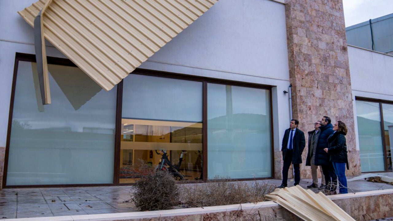 Las fuertes rachas de viento, según ha explicado Baeza, han levantado parte de la cubierta del pabellón, que ha salido despedida hasta incrustarse en el edificio anexo del gimnasio, provocando importantes desperfectos.