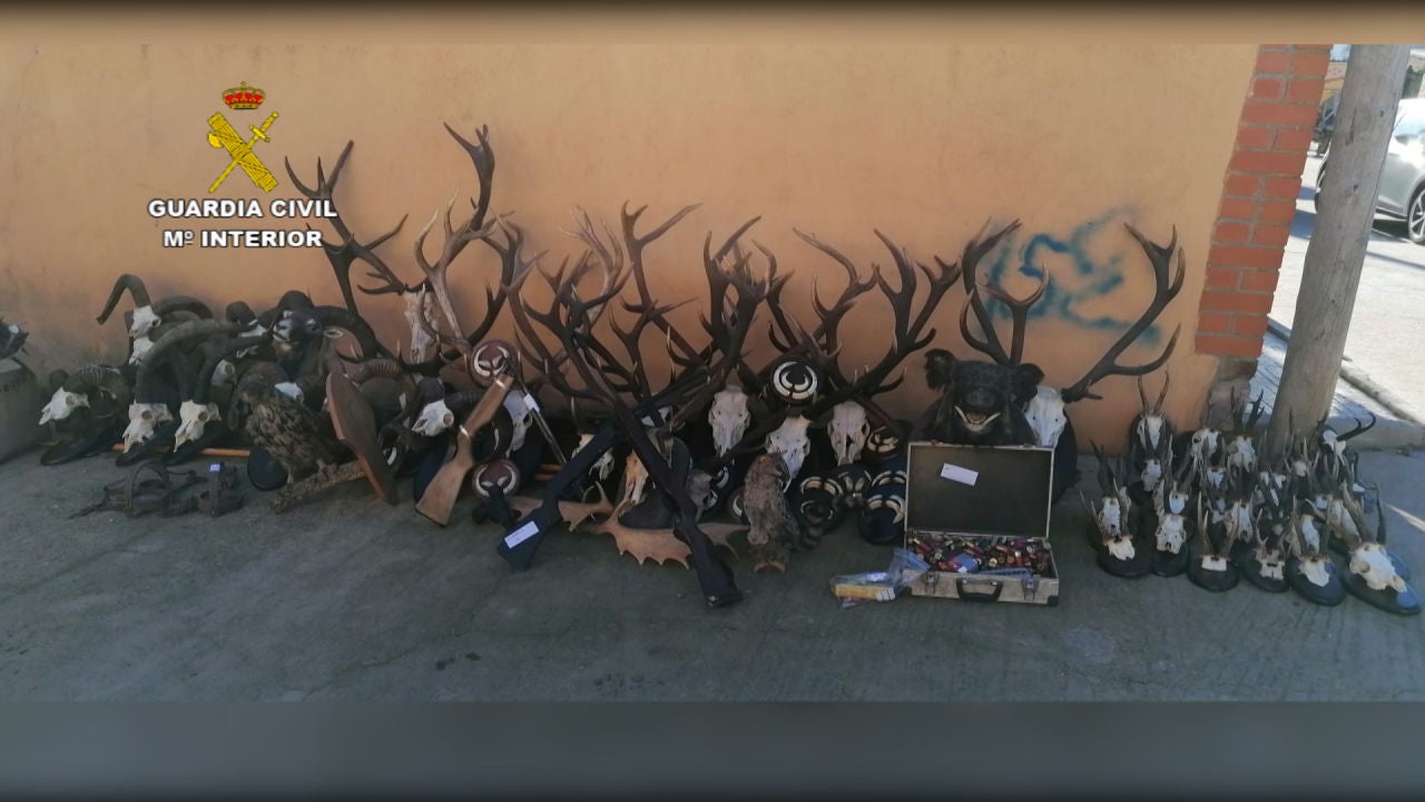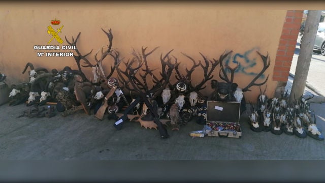 Una vez se obtuvieron las pruebas necesaria para detener a los presuntos autores de los hechos, se desplegó un dispositivo, durante el cual se realizaron 2 registros en la localidad de Retuerta del Bullaque, incluida una nave ganadera propiedad de uno de los detenidos, en los que se aprehendió numerosas herramientas, electrodomésticos, material de construcción, trofeos de caza, 300 kilos de carne de caza congelada, conservada en pésimas condiciones, así como un arma de fuego prohibida y gran cantidad de cartuchería.