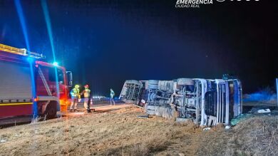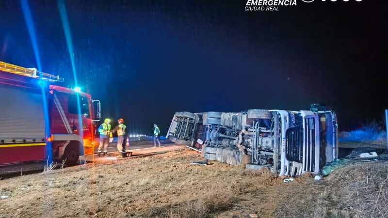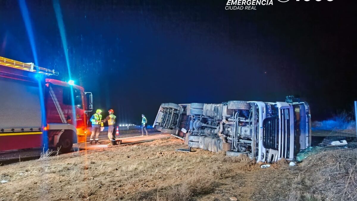 El accidente ha tenido lugar esta madrugada en el kilómetro 180 de la autovía A-4, sentido Andalucía, en el término municipal de Membrilla, cuando el tráiler se ha salido de la vía y ha volcado.