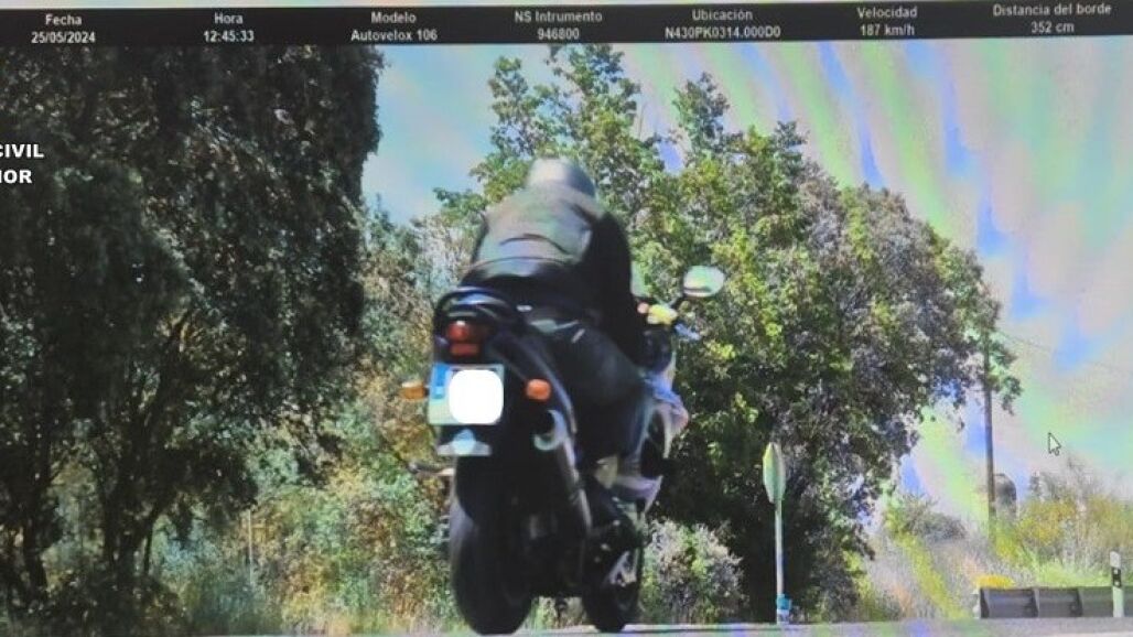 La Guardia Civil ha investigado a una persona como presunta autora de un delito contra la seguridad vial por conducir una motocicleta a 187 kilómetros por hora en una carretera convencional con limitación genérica de velocidad a 90 km/h.