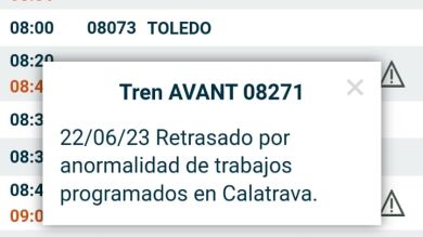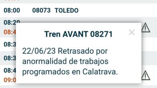 Por ejemplo, el primero que tenía que salir de la estación de Ciudad Real a las 6:42 lo ha hecho a las 7:27, es decir, con 45 minutos de retraso.