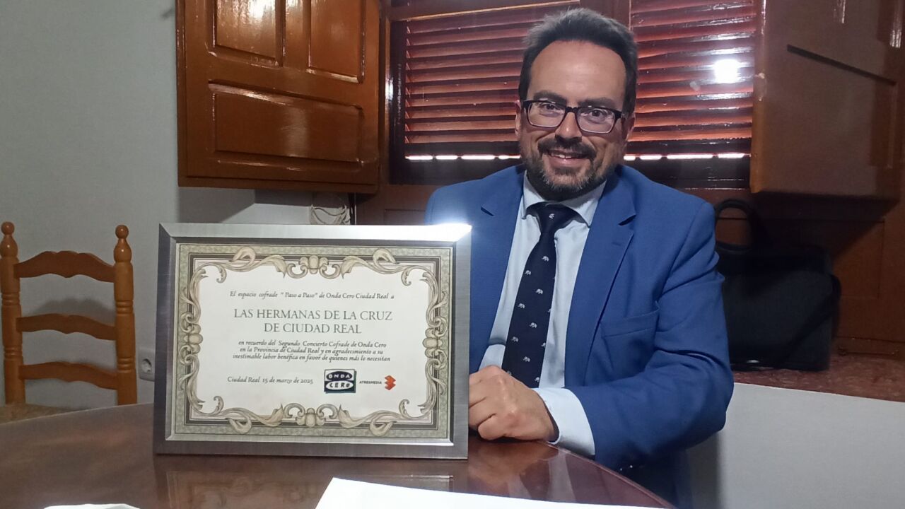 El director de Onda Cero Ciudad Real, Javier Ruiz, ha entregado este martes el donativo económico a las Hermandas de la Cruz, a las que ha dicho que “en mejores manos que las suyas no van a estar, este dinero lo van a usar mejor que nadie”.