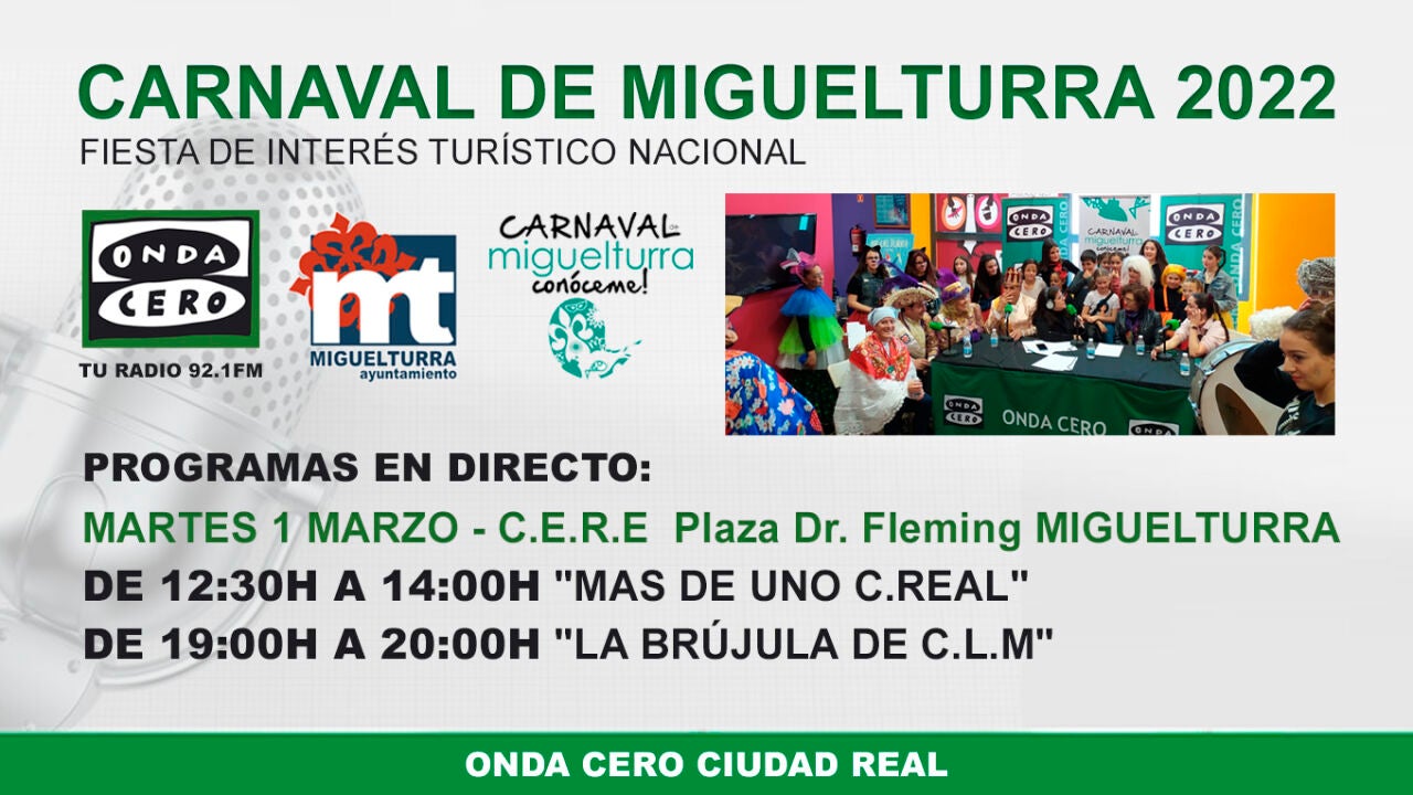 Así el programa Mas de Uno Ciudad Real, dirigido por Consoli Romero de 12:30 a 14:00 horas y La Brújula de Castilla la Mancha de 19:00 a 20:00 horas con Javier Ruíz serán retransmitidos en directo desde el C.E.R.E. en la Plaza Doctor Fleming de Miguelturra el próximo martes 1 de marzo.