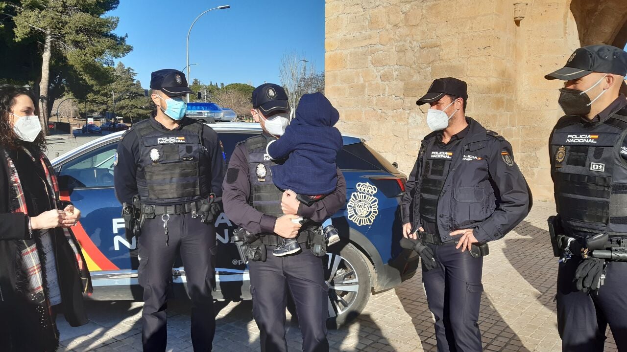 Los agentes han regalado al niño una gorra de la Policía Nacional.