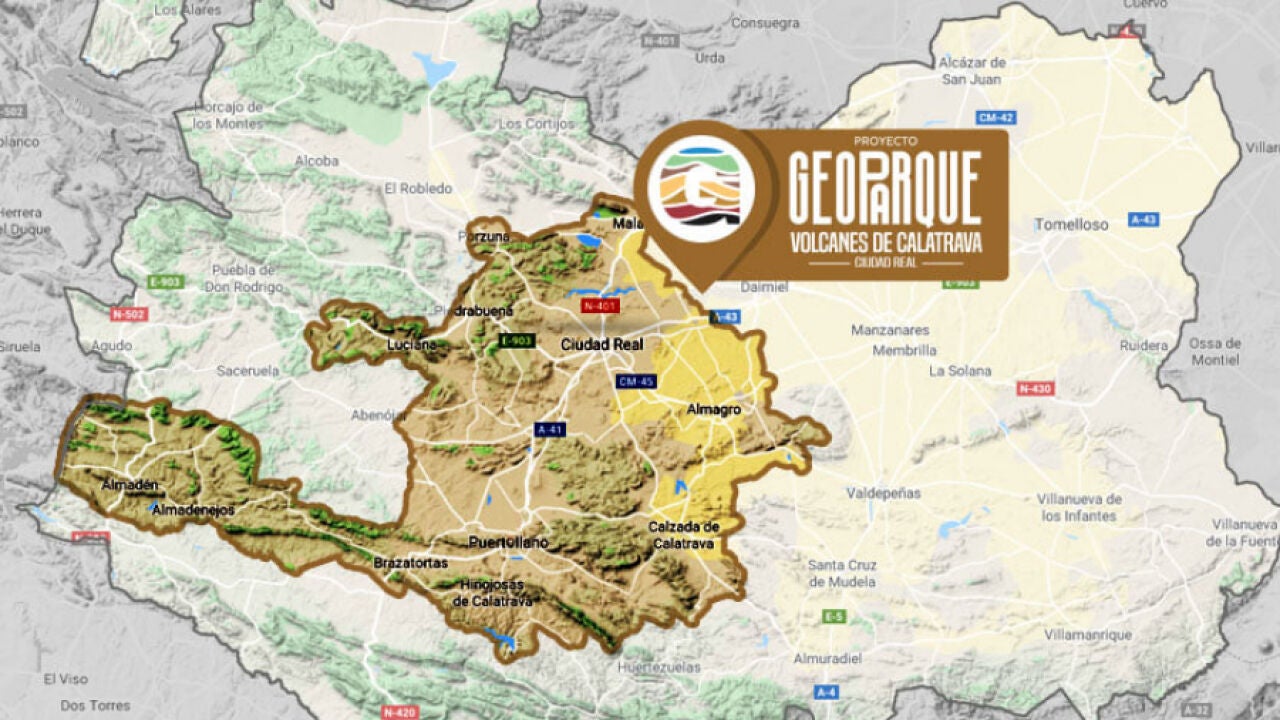 Este geoparque ocupa una extensión de 4.000 kilómetros cuadrados y engloba a 40 municipios de la provincia de Ciudad Real, destacando como lugares importantes el carbonífero de Puertollano, la mineralización del mercurio de Almadén y los volcanes del Campo de Calatrava.