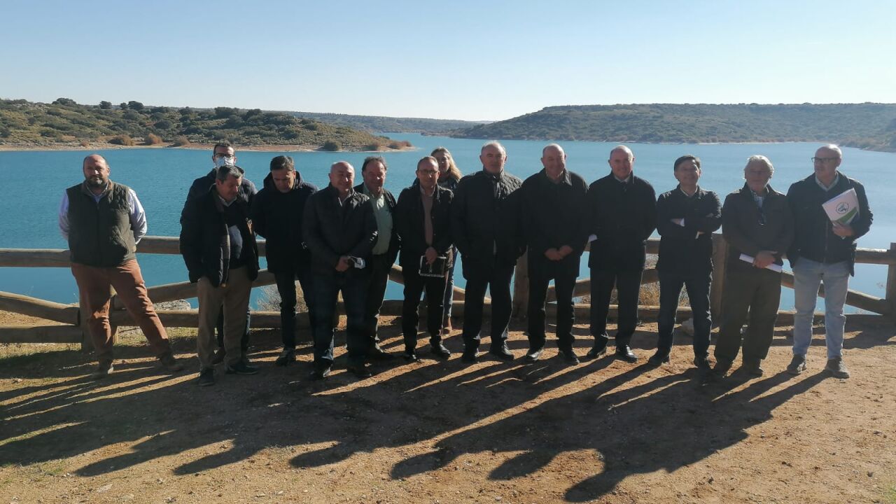 ASAJA, UPA, Coag, Cooperativas Agroalimentarias, comunidades de regantes y comunidades de usuarios de aguas subterráneas de la región se han reunido en el pantano de Peñarroya donde han leído un manifiesto.