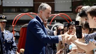 Felipe VI ha abandonado el lugar en coche con destino al campo de fútbol del Cerrú, donde le esperaba el helicóptero de la Casa Real.