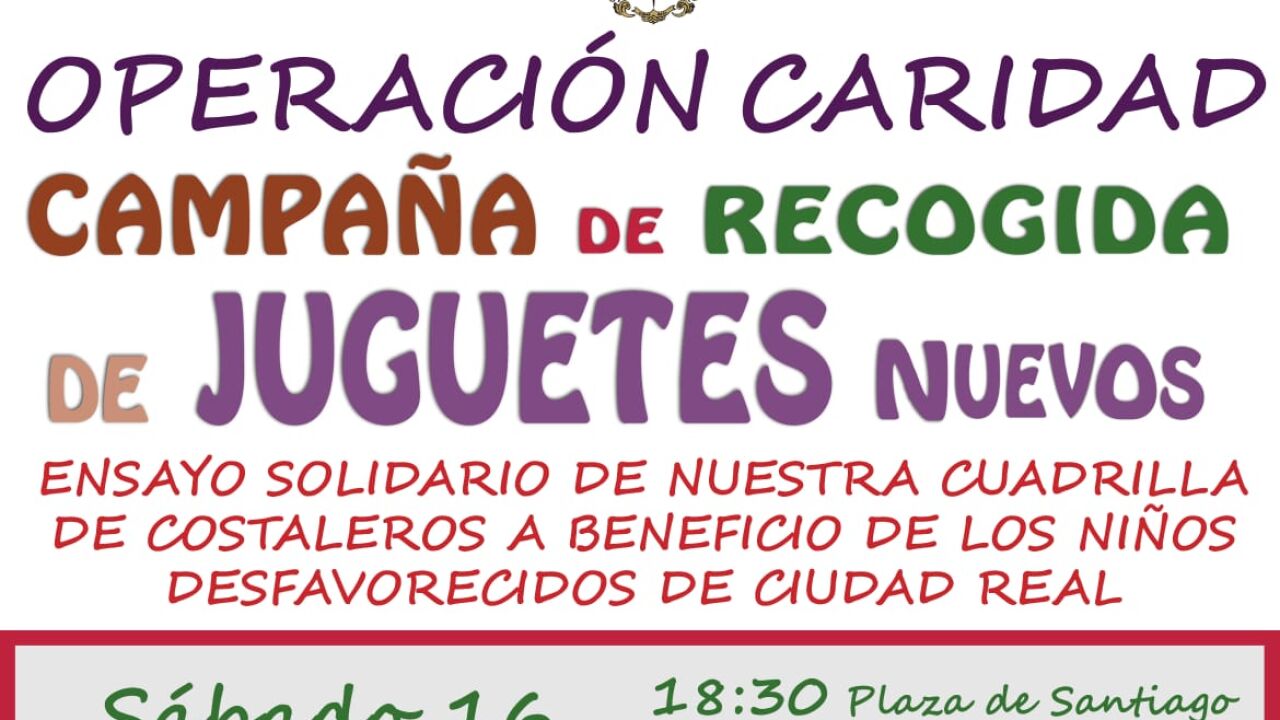 Los costaleros portarán unas andas de ensayo sobre la que se irán depositando los juguetes que se vayan recogiendo. Se realizarán tres paradas para que las personas que lo deseen puedan entregar sus juguetes, que deberán ser nuevos, en la Plaza de Santiago a las 18:30 h., en la calle del Prado a las 19:10 h. y en la calle de la Cruz a las 19:45 h. Los juguetes recogidos serán entregados a las Hermanas de la Cruz, que se encargaran de realizar el reparto en fechas posteriores.