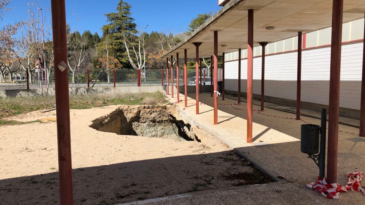 El año en el colector, a dieciocho metros de profundidad, ha provocado un gran agujero en el patio del colegio "Astrana Marín".
